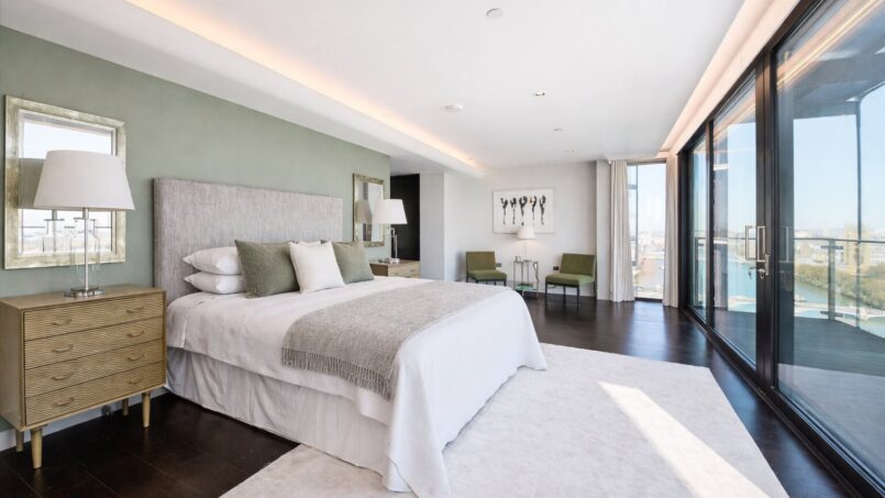 One of the apartment’s most outstanding features is the uninterrupted, breathtaking view of the Thames, which becomes even more enchanting as the sun sets. The sight of the Thames curving between Westminster and Chelsea Bridges is truly remarkable from this penthouse.